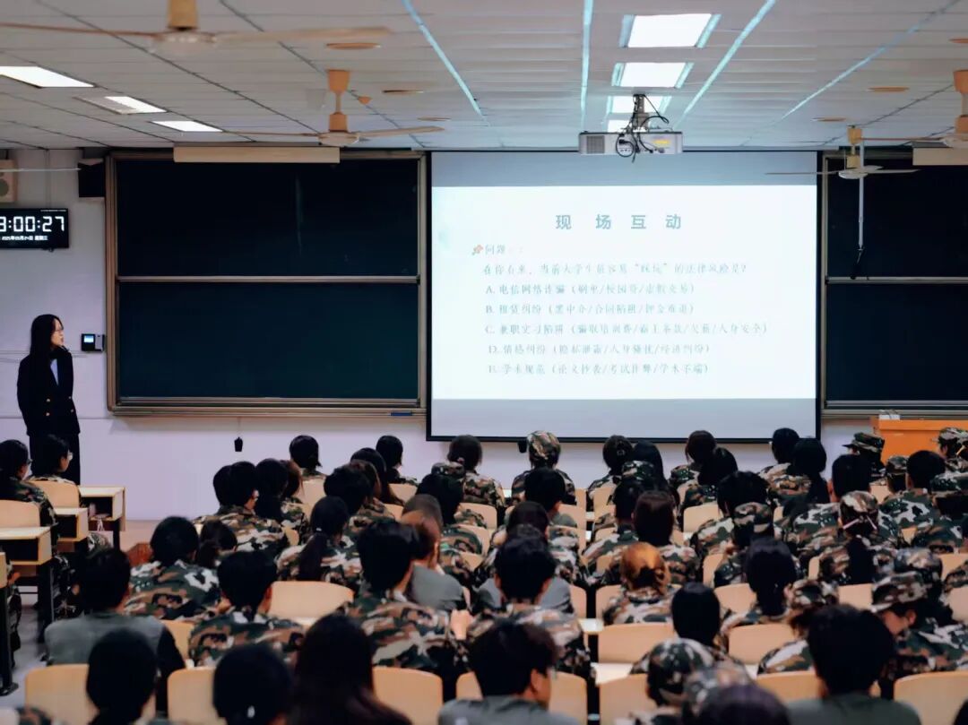 讲座内容涵盖《民法典》权益解读、刑事犯罪底线意识、恋爱期间法律边界以及防电信网络诈骗四大板块。针对大学生最容易"踩坑"的法律风险,讲座设置了多个互动环节。学生们积极参与讨论,就"电信网络诈骗"、"租赁纠纷"、"兼职实习陷阱"等常见问题展开思考。这种互动式教学不仅填补了校园法治教育的"实务空白",也响应了社会对青年群体法律保护的关切。
